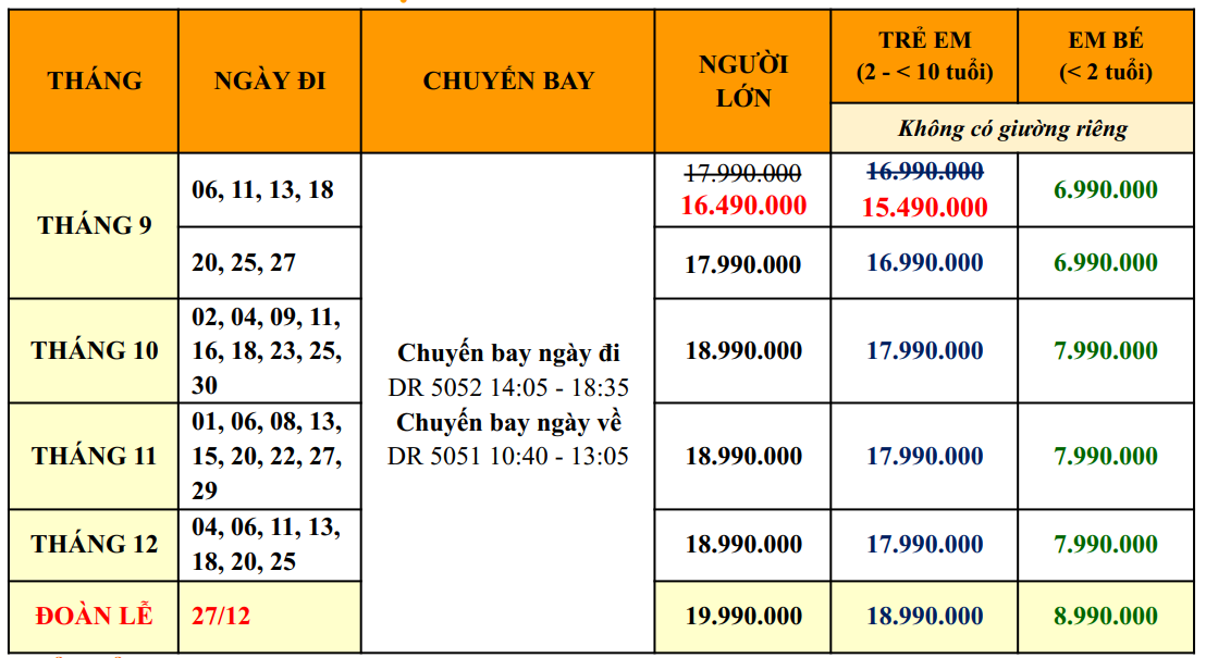 - Do phụ thuộc vào thời gian đăng ký và Lãnh Sự cấp VISA, giá vé có thể thay đổi tại thời điểm xuất vé
