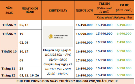 - Lịch khởi hành & Bảng giá