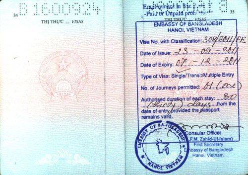 Hồ sơ làm visa bangladesh đi công tác
