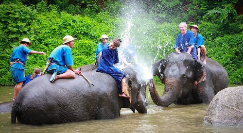 Du khách thoải mái chơi đùa cùng những chú voi khi đến du lịch Lampang